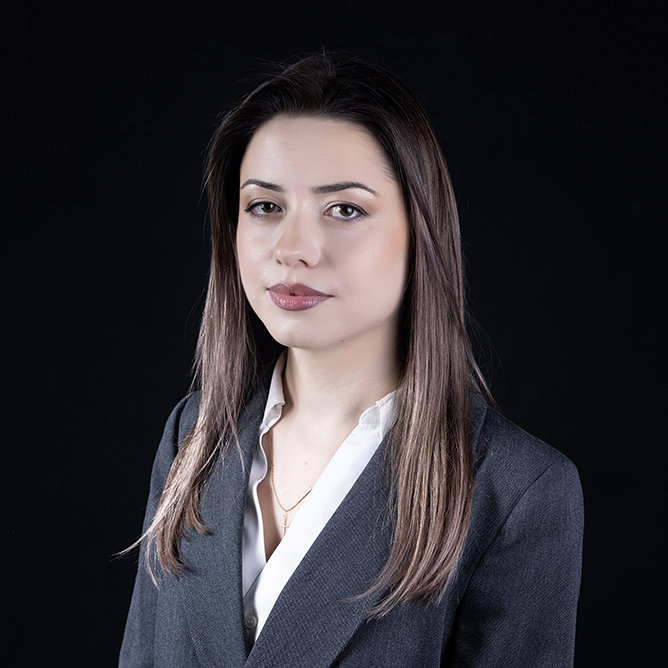 Yevgenya Nikoghosyan is a specialized attorney in the fields of intellectual property and civil law. She has been a member of the Armenian Bar Association since 2013 and has held the status of a registered Patent and Trademark Attorney since 2023.